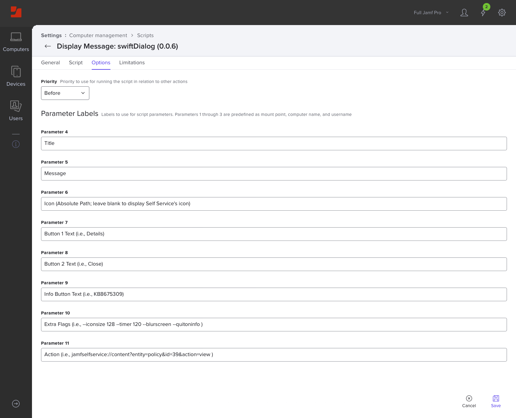 - Changed Jamf Pro Script Parameters